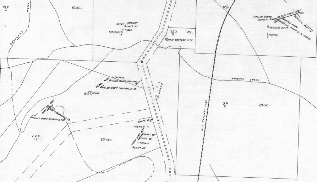 The most productive gold mine was the Golden Mara Mine. It consisted of multiple leases that covered 30 acres, to mine Branxholm, Little Branxholm, Coronella, Blue, Riley’s and Ascot reefs to shallow depths with the ore crushed at the “Dauntless” battery.
